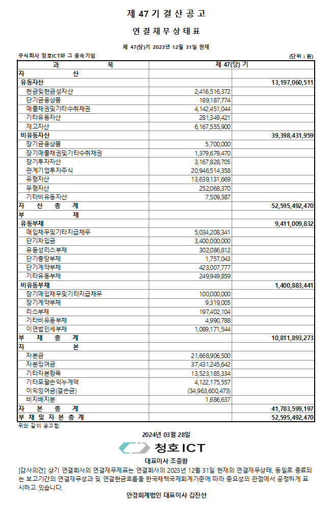 Á¦47±â °á»ê°ø°í_¿¬°áÀ繫»óÅÂÇ¥