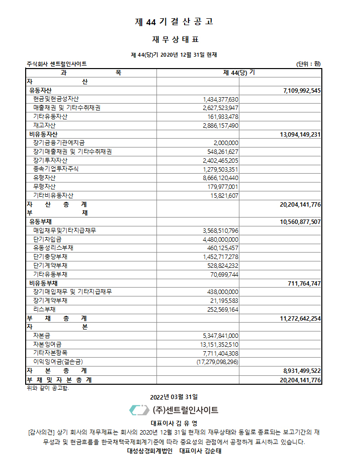Á¦44±â °á»ê°ø°í_º°µµÀ繫»óÅÂÇ¥