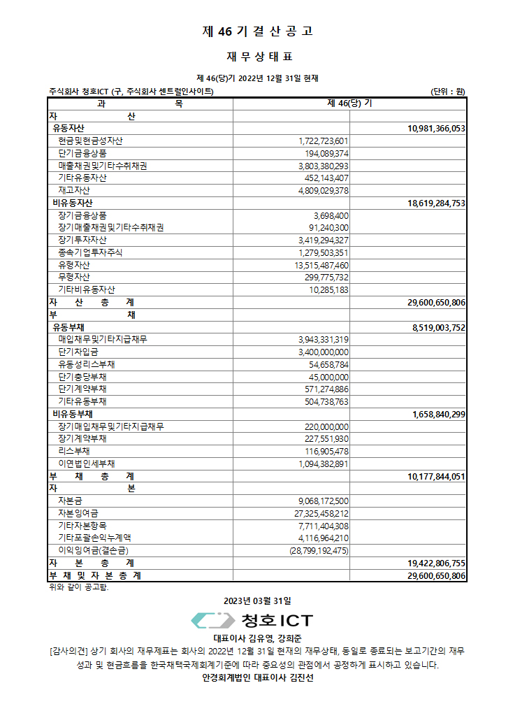 Á¦46±â °á»ê°ø°í_º°µµÀ繫»óÅÂÇ¥